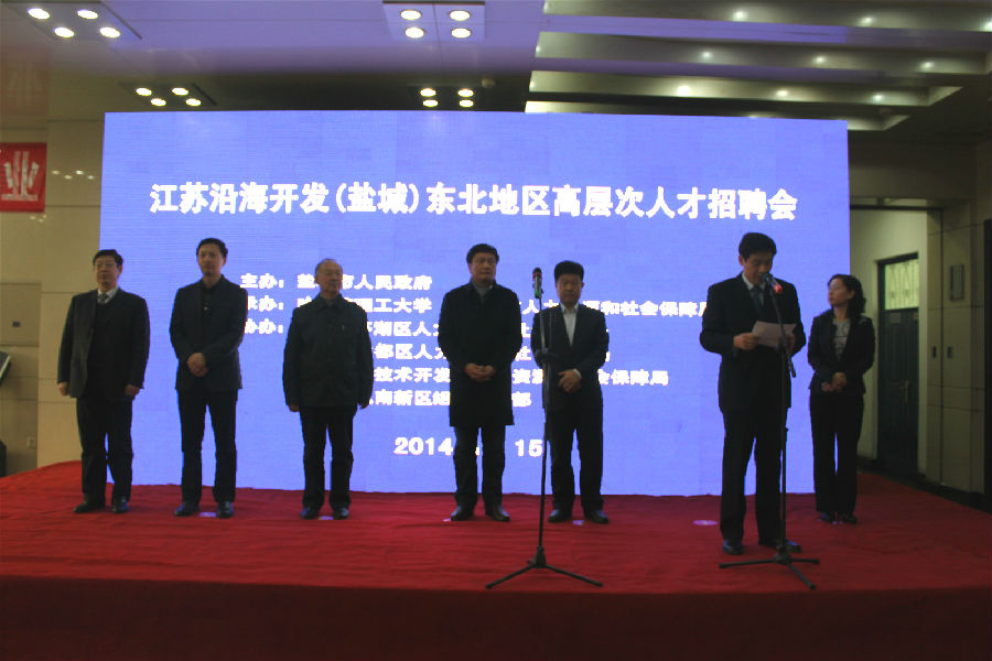 11月15日,江苏沿海开发(盐城)东北地区高层次人才招聘会在哈尔滨理工大学和黑龙江大学举办。市委常委、常务副市长戴元湖出席开幕式并致辞。